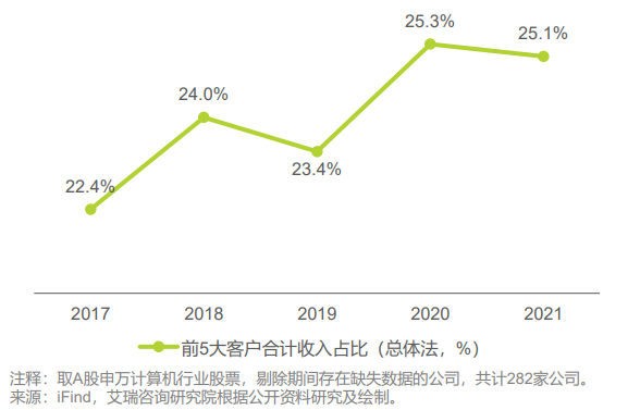 2017-2021年A股計算機企業(yè)前5大客戶收入占比