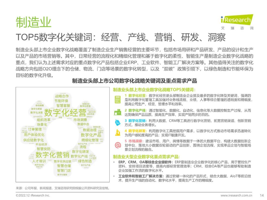 2021年中國大型企業(yè)數(shù)字化支出規(guī)模約為2.8萬億元,估算2021-2026年中國大型企業(yè)數(shù)字化支出平均復(fù)合增速將達(dá)到12.3%。基于對上市公司數(shù)字化戰(zhàn)略的分析,艾瑞咨詢發(fā)現(xiàn)大型企業(yè)數(shù)字化戰(zhàn)略部署集中在“生產(chǎn)-運輸-銷售-體驗管理”鏈條以及“安全”和“環(huán)?!眱纱蟾拍?。